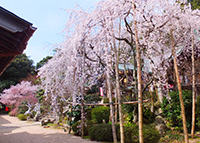 花びらは桜色より白に近く、滝のように美しくしなだれ咲き誇ります。ご祭神の神功皇后が、この地で腹帯を着け、安産されたという故事に由来し、「お産の常宮さん」として御利益があるとされています。また、大谷吉継が豊臣秀吉の命により奉納したといわれる国宝の朝鮮鐘が所蔵されています。