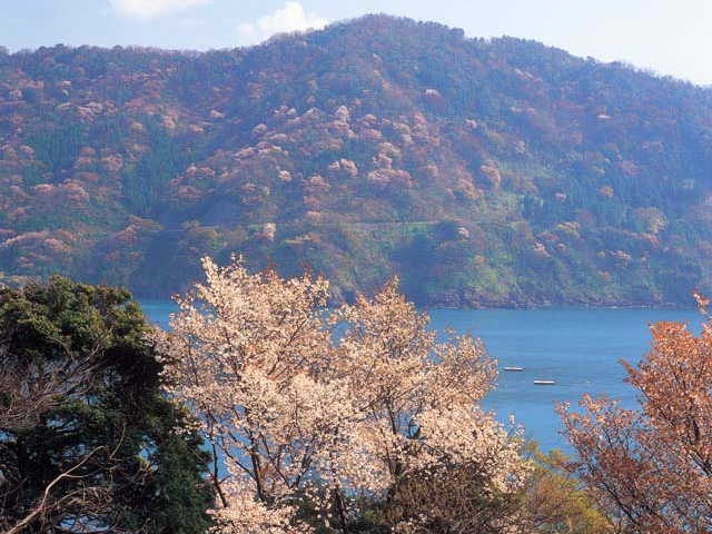 福井県の名勝地として指定されている「神子の山桜」は、その数の多さに地元の人から「千本桜」とも呼ばれています。見頃の時期には常神半島が薄紅色に染まります。海の青とのコントラストは絶景で、特に船上からの花見が一番美しく見えます。